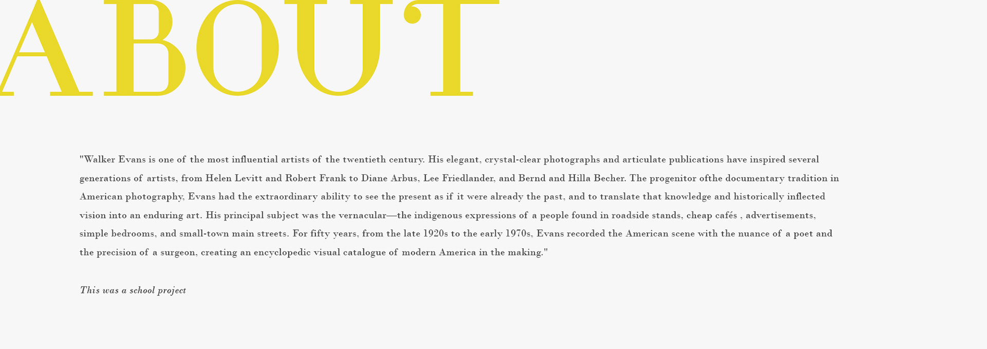 Walker Evans was an American photographer and photojournalist best known for his work documenting the effects of the Great Depression. This exhibition is a retrospective of his life & work.